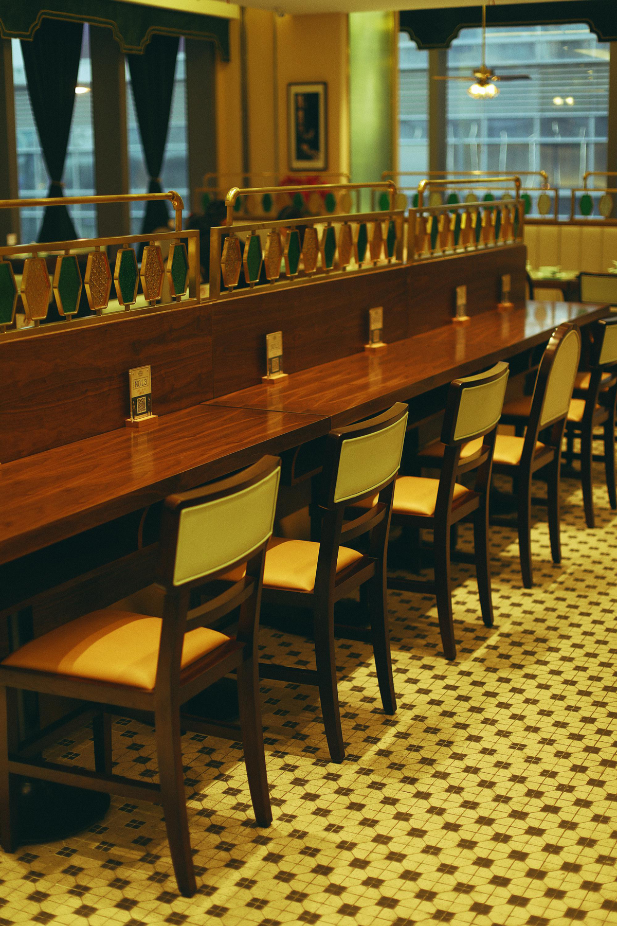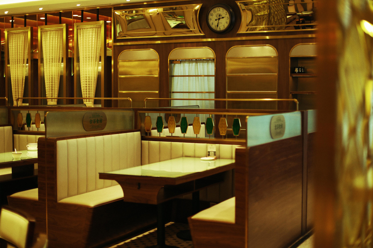 卡座的椅背就像石板 一条条地树立在食客们的身后